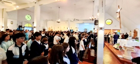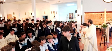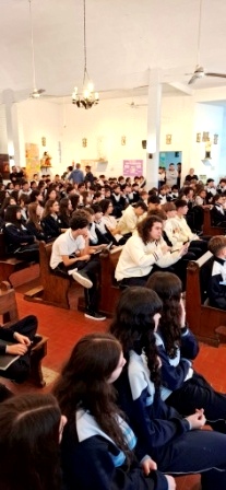 Con motivo de las Pascuas de Resurrección, los alumnos del nivel Medio, participaron de la Misa de Celebración en nuestra Parroquia Presentación del Señor.